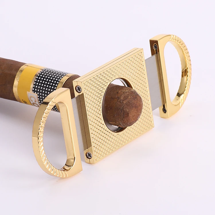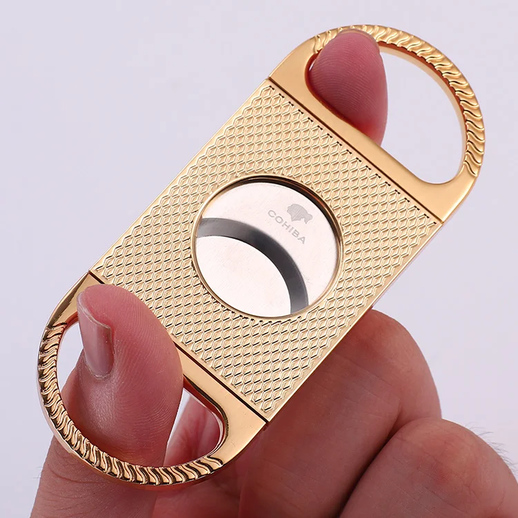 Best Seller COHIBA Classic Golden Color Personalized Dual Blade Stainless Steel Cigar Cutter / Portable Brand C